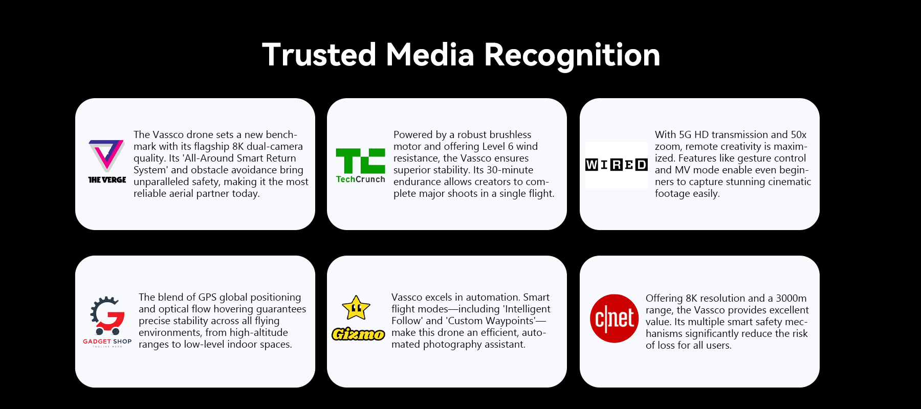 Vassco’s founder, Lukas Weber, had long been frustrated by the unstable flight performance and poor image quality of traditional drones. Countless interrupted shoots and missed aerial moments inspired him to create a reliable, intelligent, and stable drone that could capture every scene with precision.